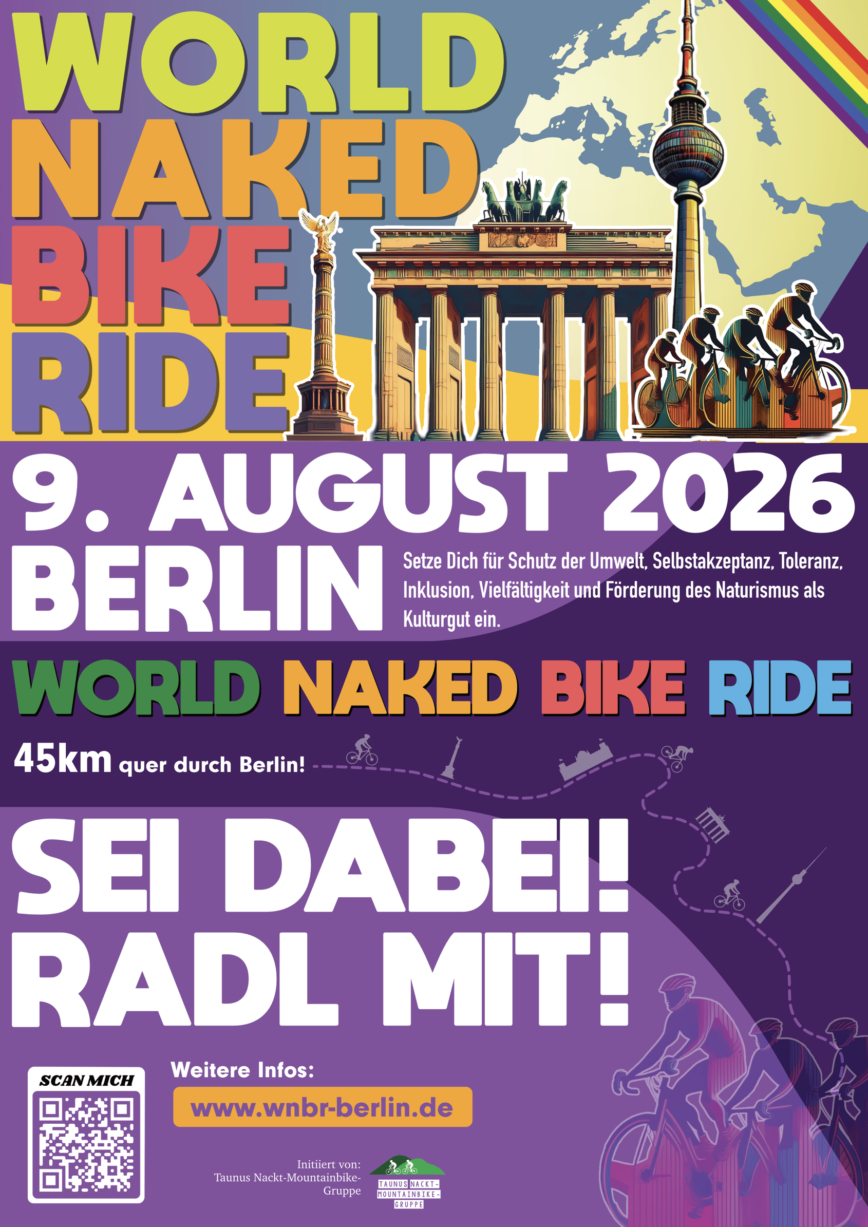 Berlin als Austragungsort ist nicht nur in Bezug auf den ansässigen FSV Adolf Koch e.V. (einer der Gründerväter der FKK-Bewegung) der ideale Austragungsort, sondern auch wegen der Geschichte der Stadt, die 28 Jahre geteilt in Ost und West war. Die Route quer durch die Stadt, bzw. auf der ehemaligen Mauergrenze soll als Symbol die Zusammenführung und Einheit zum Ausdruck bringen. Die Nacktheit der Teilnehmer hat keinen sexuellen Bezug. Hierauf weisen wir alle Teilnehmer an dem WNBR 2026 hin. Alle Teilnehmer möchten wir bitten sich im naturistischen Sinne zu verhalten. Wir wünschen uns einen positiven, respektvollen und friedlichen Umgang aller Demonstrierenden miteinander.