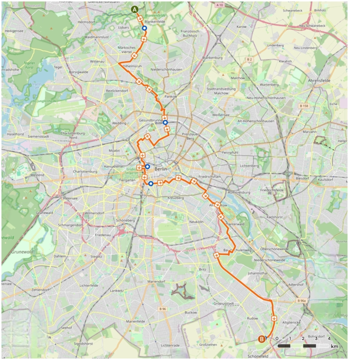 Die Demoroute führt uns zum größten Teil entlang des zentralen Abschnitts des „Berliner Mauerwegs“, quer durch Berlin. Die Route ist ca 45km lang und führt dabei an zahlreichen und geschichtsträchtigen Orten und Bauwerken vorbei.* *Die Genehmigung der Route durch das Regierungsviertel steht noch aus. Routenänderungen vorbehalten.