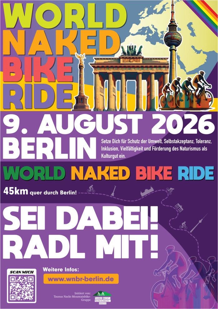 Berlin als Austragungsort ist nicht nur in Bezug auf den ansässigen FSV Adolf Koch e.V. (einer der Gründerväter der FKK-Bewegung) der ideale Austragungsort, sondern auch wegen der Geschichte der Stadt, die 28 Jahre geteilt in Ost und West war. Die Route quer durch die Stadt, bzw. auf der ehemaligen Mauergrenze soll als Symbol die Zusammenführung und Einheit zum Ausdruck bringen. Die Nacktheit der Teilnehmer hat keinen sexuellen Bezug. Hierauf weisen wir alle Teilnehmer an dem WNBR 2026 hin. Alle Teilnehmer möchten wir bitten sich im naturistischen Sinne zu verhalten. Wir wünschen uns einen positiven, respektvollen und friedlichen Umgang aller Demonstrierenden miteinander.